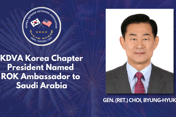 KDVA Korea Chapter President Named ROK Ambassador to Saudi Arabia January 12, 2024 The Korea Defense Veterans Association (KDVA) congratulates KDVA Korea Chapter President, General (Ret.) Choi, Byung-Hyuk, for his…