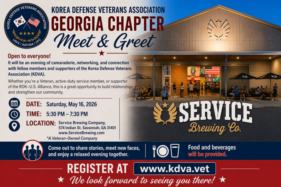 Open to everyone! Join us for an evening of camaraderie, networking, and connection with fellow members and supporters of the Korea Defense Veterans Association (KDVA). Whether you’re a Veteran, active-duty service member, or supporter of the ROK–U.S. Alliance, this is a great opportunity to build relationships and strengthen our community.