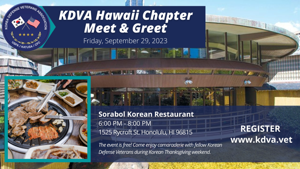 Come enjoy camaraderie with fellow Korean Defense Veterans during Korean Thanksgiving weekend.