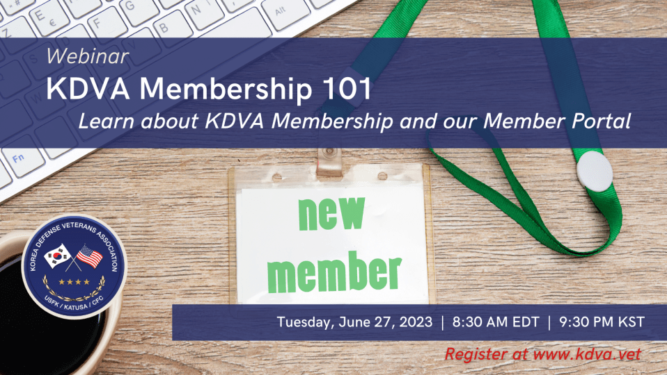 KDVA just made it easier for members to access membership benefits and to connect with other KDVA Members and ROK-U.S. Alliance supporters from around the world. We will take your questions and ideas during this interactive session!