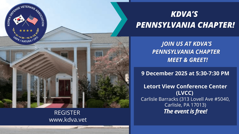 The KDVA PA Chapter is dedicated to honoring and supporting those who have served in the defense of the United States and South Korea. Our chapter aims to foster a sense of camaraderie among Veterans, families, friends, and supporters to provide opportunities to share your experiences, seek assistance, or simply connect with fellow Veterans and anyone interested in Korea.