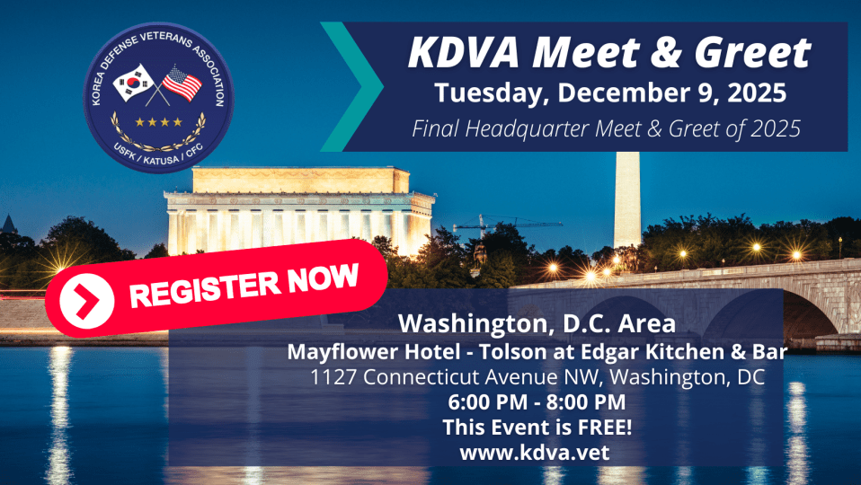 This event is free for KDVA Members & ROK-U.S. Alliance Supporters. If you are not a KDVA member, please join KDVA by applying here. Membership is free.